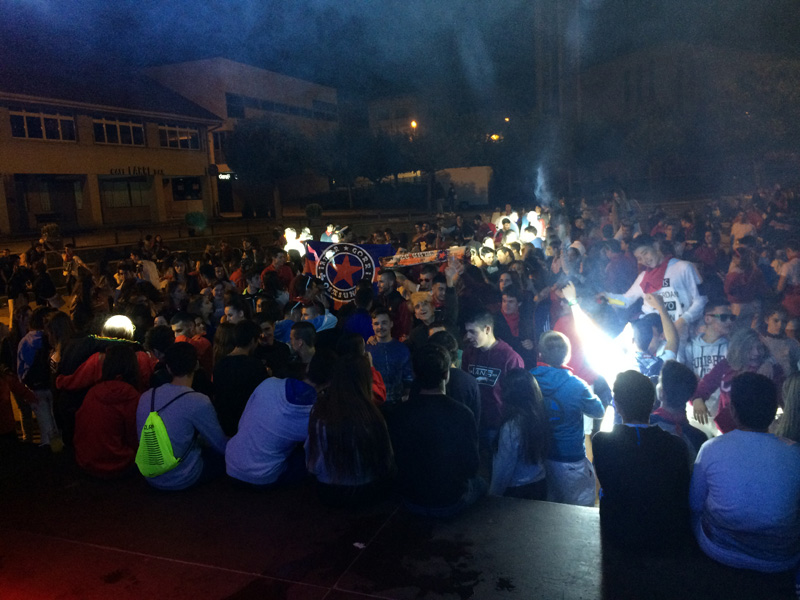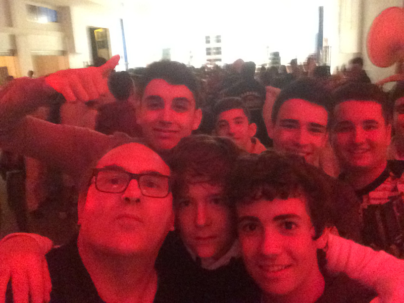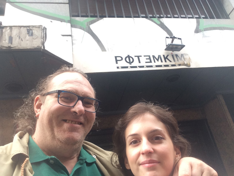 Con el grupo durante la cena antes de la actuación en ARRONIZ