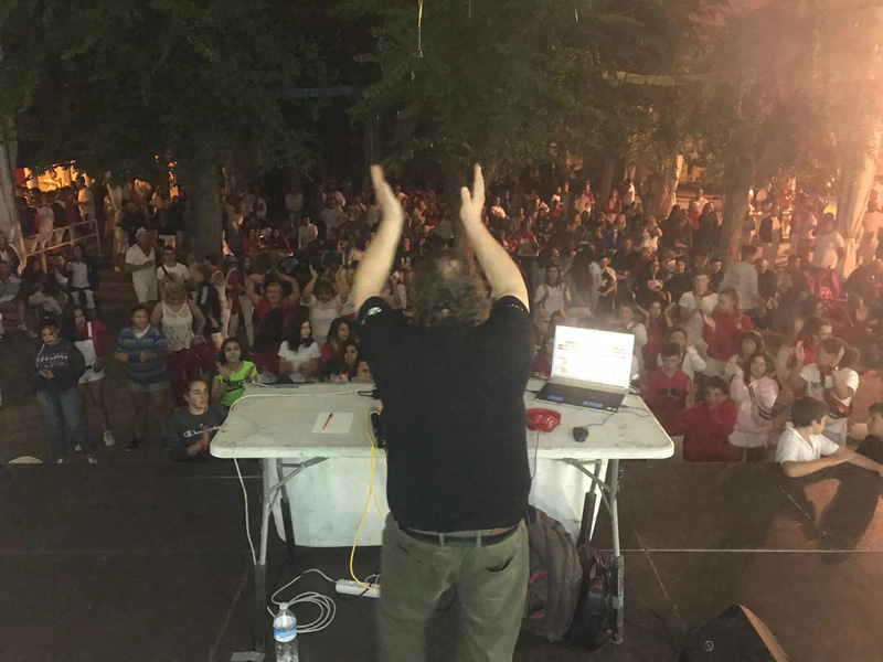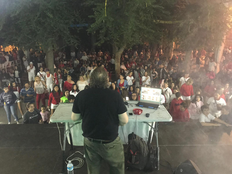 Selecta selección musical durante toda la actuación, lo que hace que la gente se lo pase en grande
